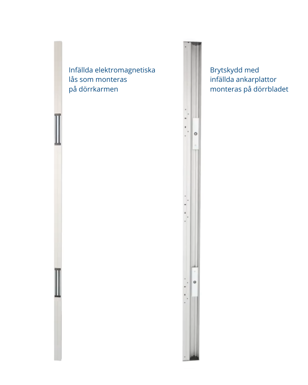 Vår brytskydd består av en kraftig elektromagnet monterad i en skyddande aluminiumprofil samt en ankarplatta på dörrbladet. När ström tillförs bildas ett starkt magnetfält som håller dörren säkert stängd med hög hållkraft.